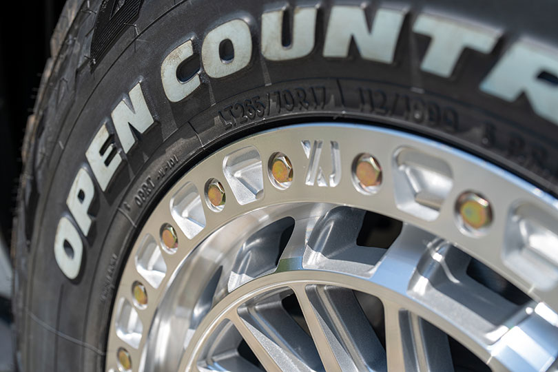 フランジには貫通ホール構造を採用。無骨でマッシブなギア感を演出しつつ、オフロード走行時の砂利や水を排出する機能性も兼ね備える。デザインに宿るのは、単なる装飾ではなく機能美そのもの。